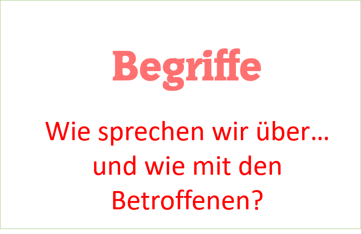 Immer sollte beachtet werden, dass wir mit den betroffenen Frauen senisible sprechen und keine Begriffe benutzen, die sie ablehnen oder die sie eventuell sogar traumatisieren können.
